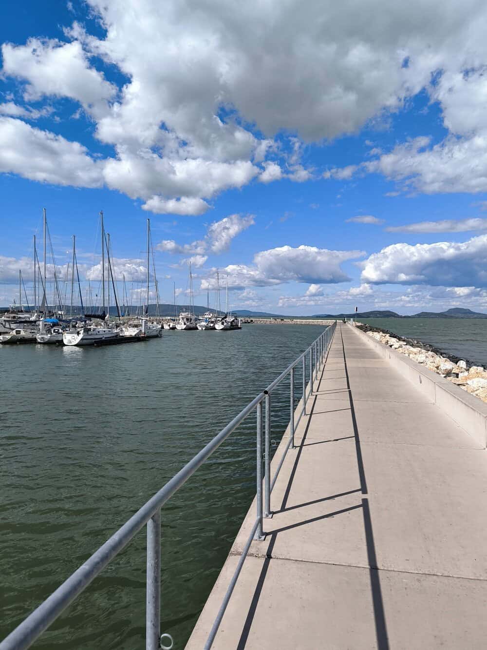 A kisvasút balatonfenyvesi állomásától mindössze egy utcára fekszik a Balaton és a helyi kikötő, ahol egészen hosszan kisétálhatsz a mólón. Tiszta időben a szemközti tanúhegyekig és a fonyódi vízpartig is kényelmesen ellátni.
