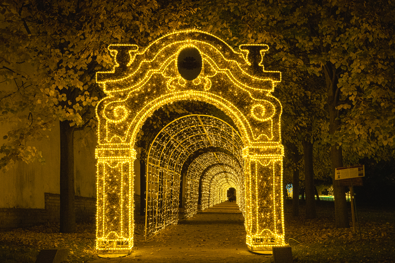 Öt hazai várost borítanak be a mesebeli fényfüzérek és fényszobrok: Pécsen a Fények Elvarázsolt Erdeje, Szolnokon A Fényállatok Parkja, Gödöllőn Erzsébet királyné Fénykertje, Zalaegerszegen a Fények Falva, Fertődön pedig az Esterházy-kastély barokk kertje alakul fénybirodalommá esténként.