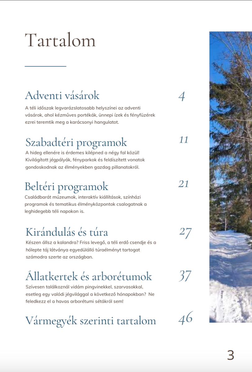 Készen állsz arra, hogy idén ne csak átvészeld, hanem igazán megéld a téli pillanatokat? Legújabb e-bookunk nagy segítség lehet ebben, hiszen 100 ünnepi programot, élményt és kirándulást gyűjtöttünk össze neked. Téli csodahelyek Magyarországon – olvass tovább a részletekért!