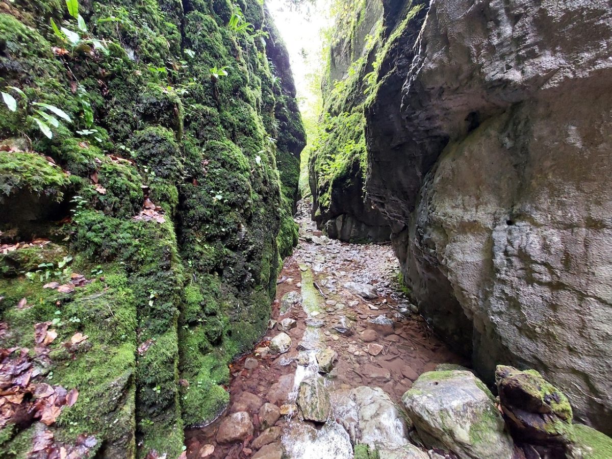 A kezdetben széles, majd később szurdokformát öltő völgy az elméletek szerint ősi barlang beomlásával keletkezett, a ma látható barlangbejáratok az egykori oldalfolyosók maradványai. A völgy első és egyben alsó szakaszán széles tisztáson haladunk, de a patak mentén egyre feljebb haladva, a völgy elkezd beszűkülni. 1–2 kilométer után ér véget az ártér, és a patakot egyre közelebbről szegélyezik a hatalmas sziklafalak. Az út végig a patak mellett, folyási iránnyal szemben vezet, de néhol oldalt kell váltani a megfelelő haladáshoz. Ehhez a patakban szerteszét heverő szikladarabok és bedőlt fatörzsek adnak biztos támpontot, de azért nem árt az óvatosság, és készüljünk fel vízálló bakanccsal is.