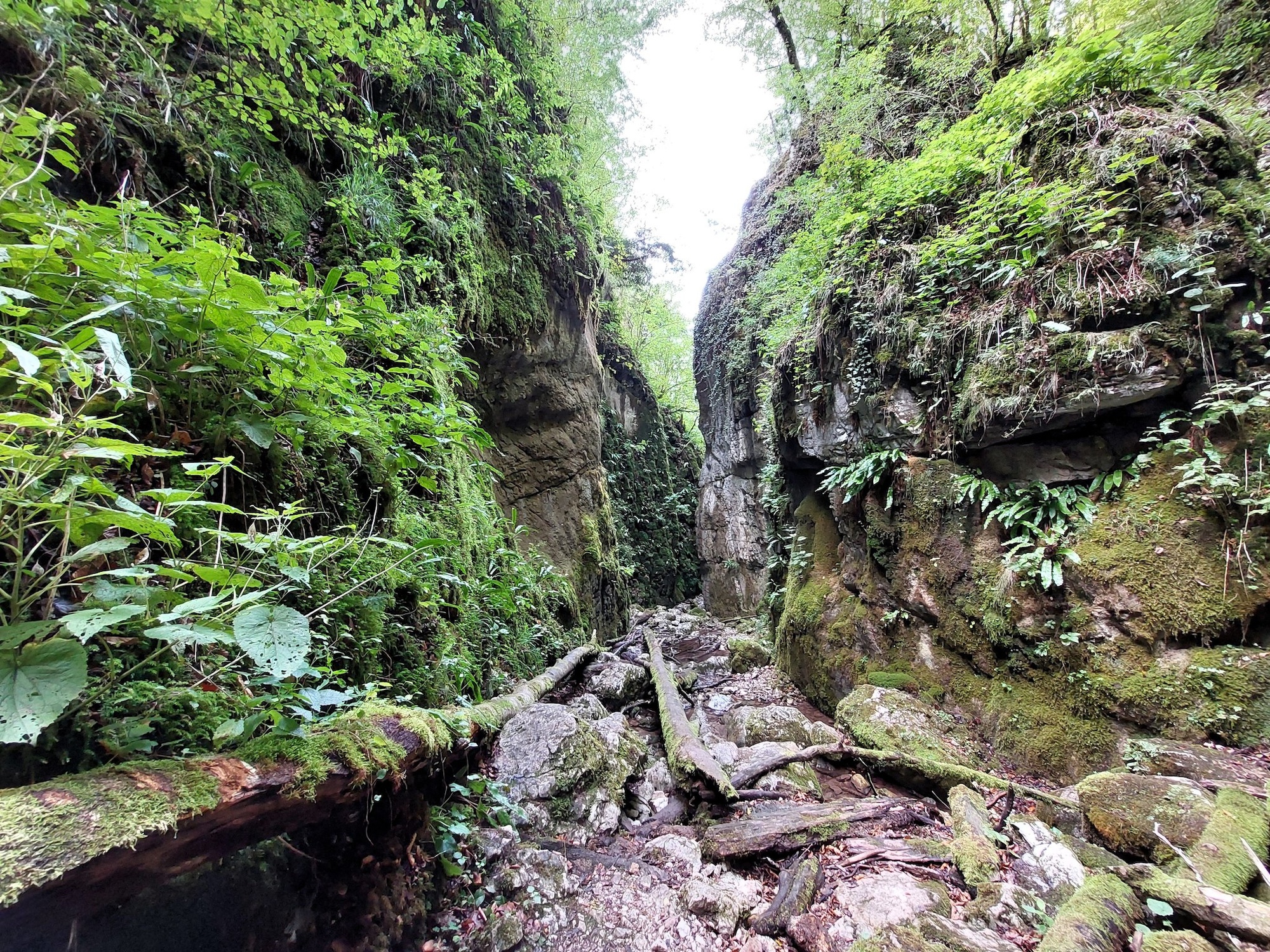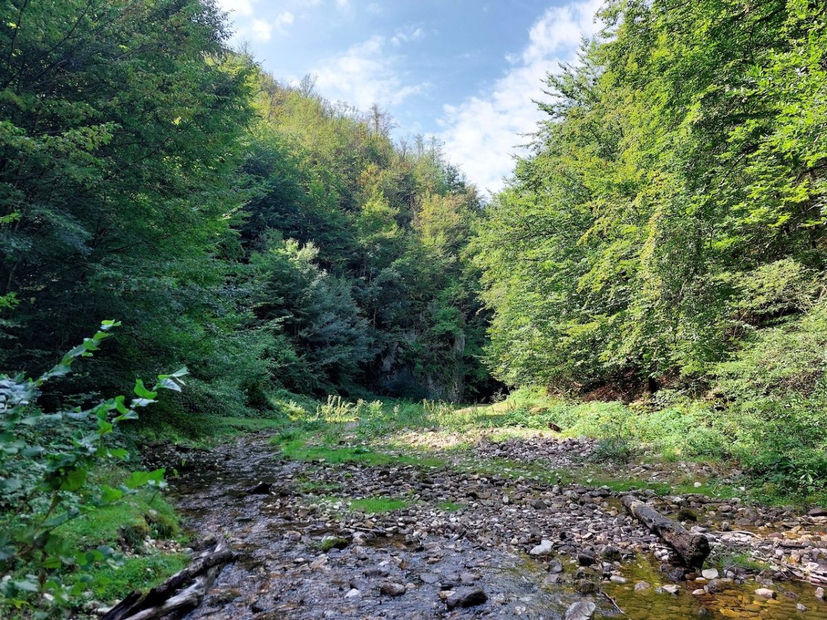 A kőköz legfelső részén a meder már száraz, hiszen a Szegyesd-patak fő vízforrása, a baloldali kőomláson érkező Koliboaja-patak – ugye folyási iránnyal szemben haladtam a völgyben. A kőköznek egy 7 méter magas ugrató vet véget, amelyen túljutni megfelelő felszerelés nélkül lehetetlen, azt csak csak profi sziklamászók tudják megtenni.