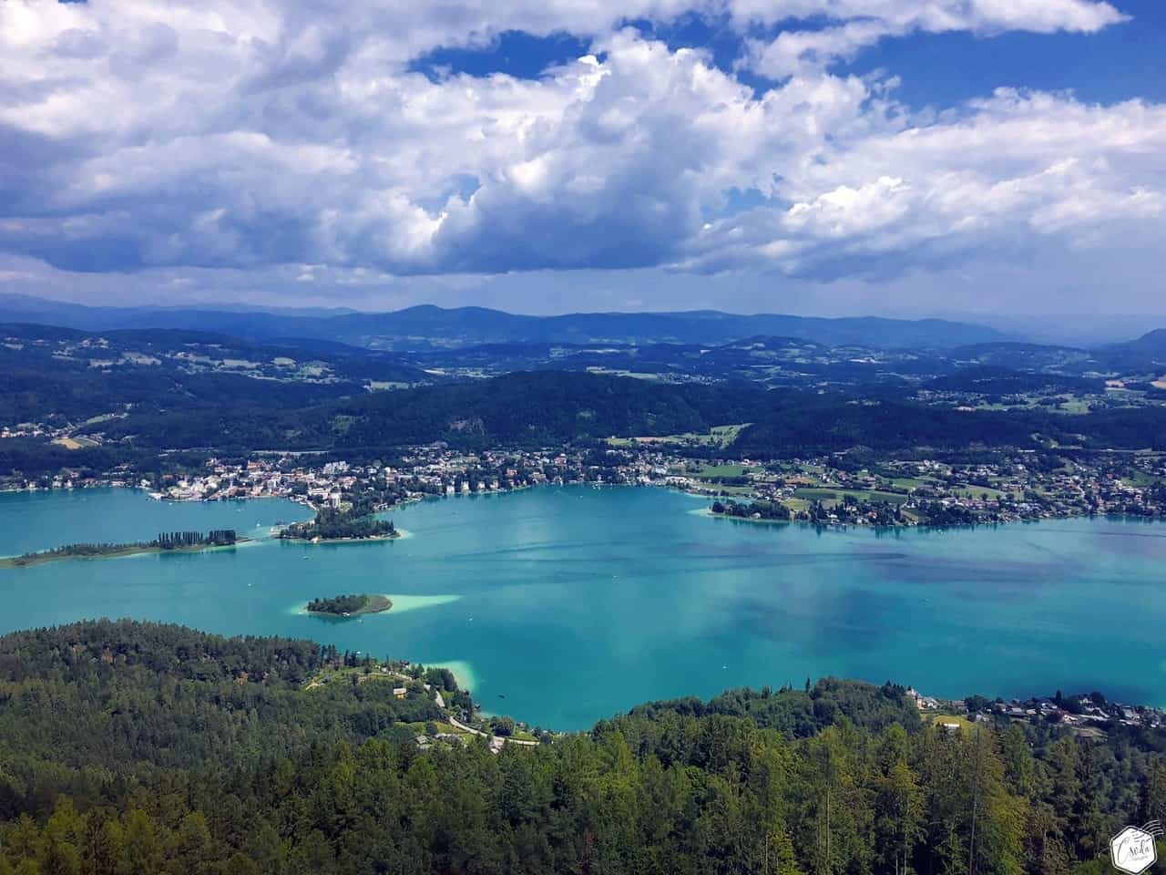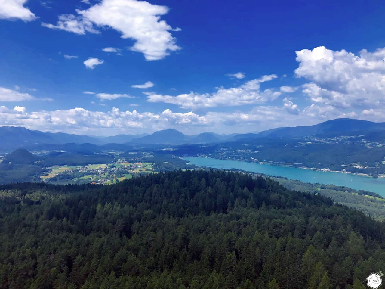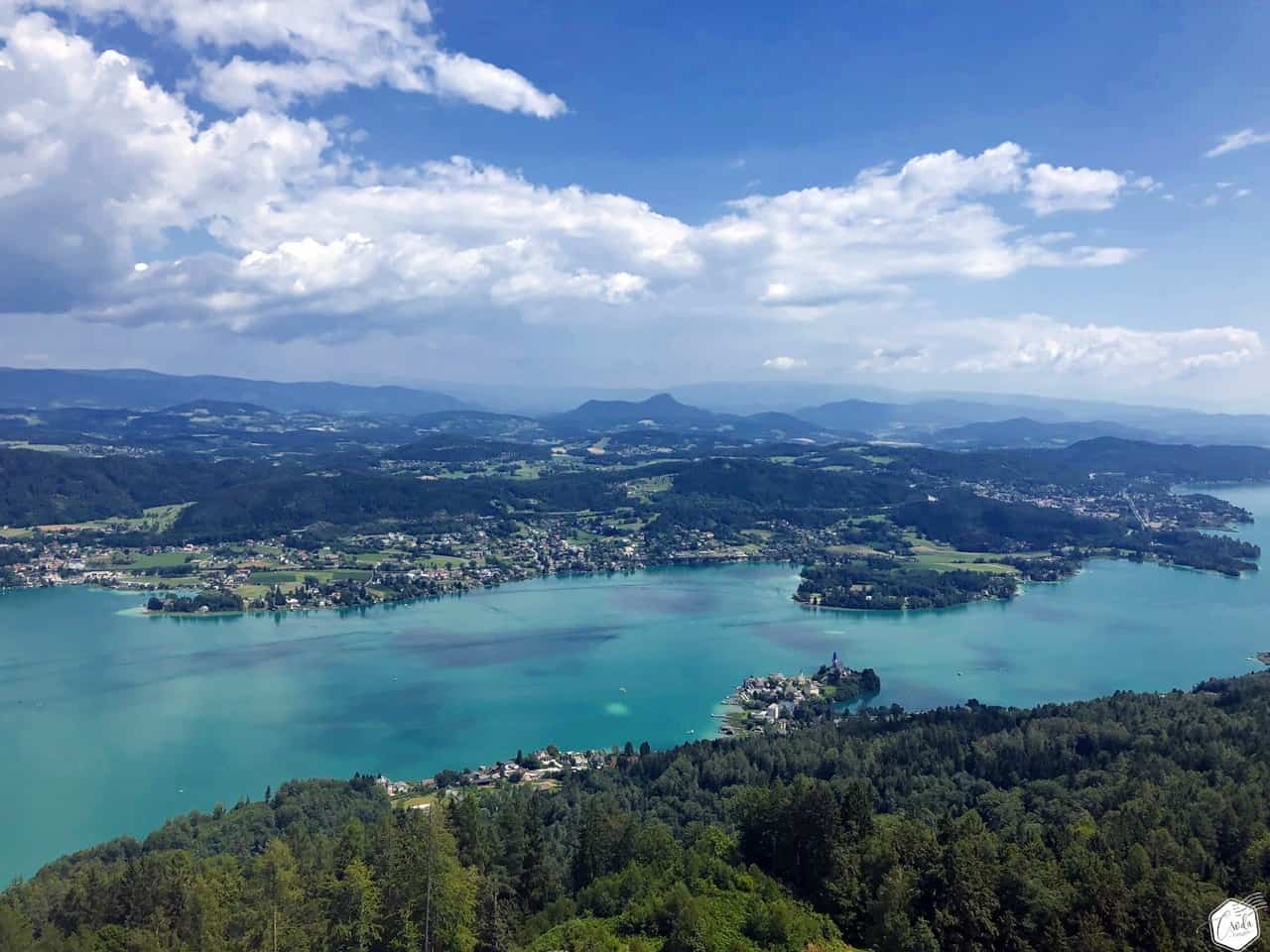 Szinte teljes nagyságában láthatjuk innen a türkizkék vizű Wörther See-t, délen a Keutschacher See-t és a Karavankák hegyláncait. Ha pedig elvesznénk a hegyek látványában, bátran vegyük igénybe a tájékozódást segítő információs táblákat.