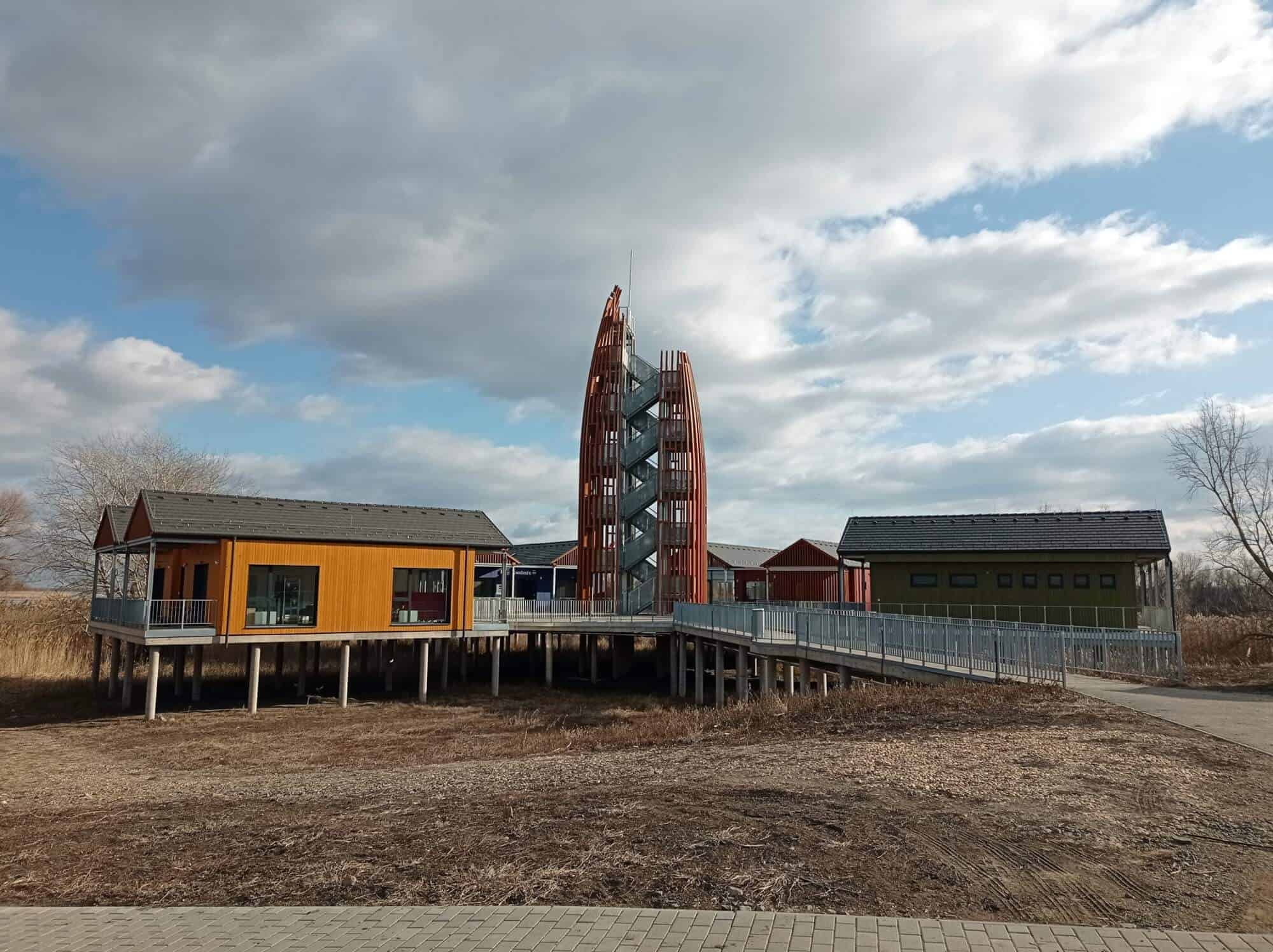 A kilátó a Tisza-tó egyik legcsendesebb helyén, Dinnyésháton található. A kikötő mellett álló emelvénynél egy kézzel húzható mini komp kapott helyet, ami még különlegesebbé teszi a kikapcsolódást a gyerekek számára.